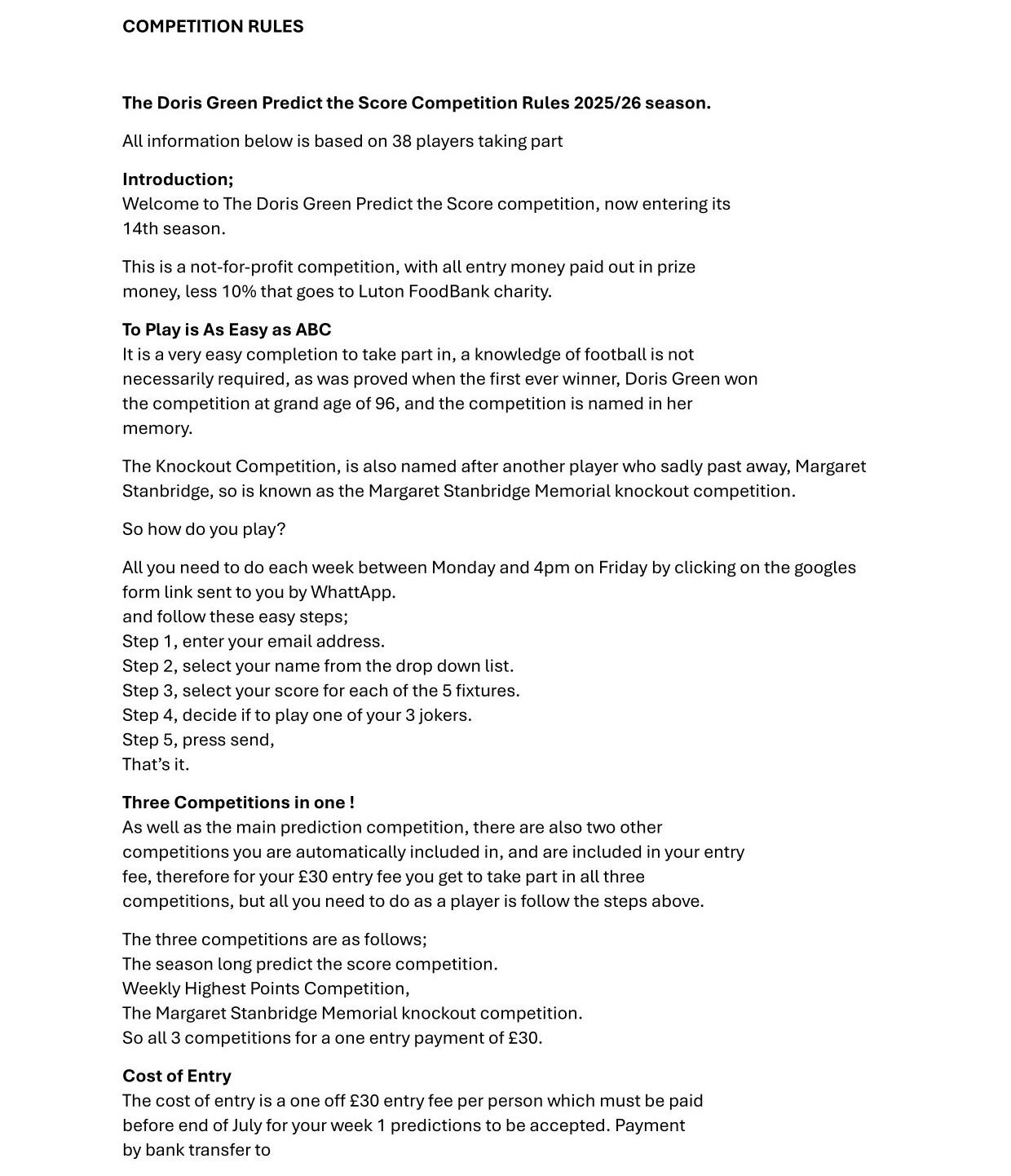 THE DORIS GREEN PREDICT THE SCORE COMPETITION
